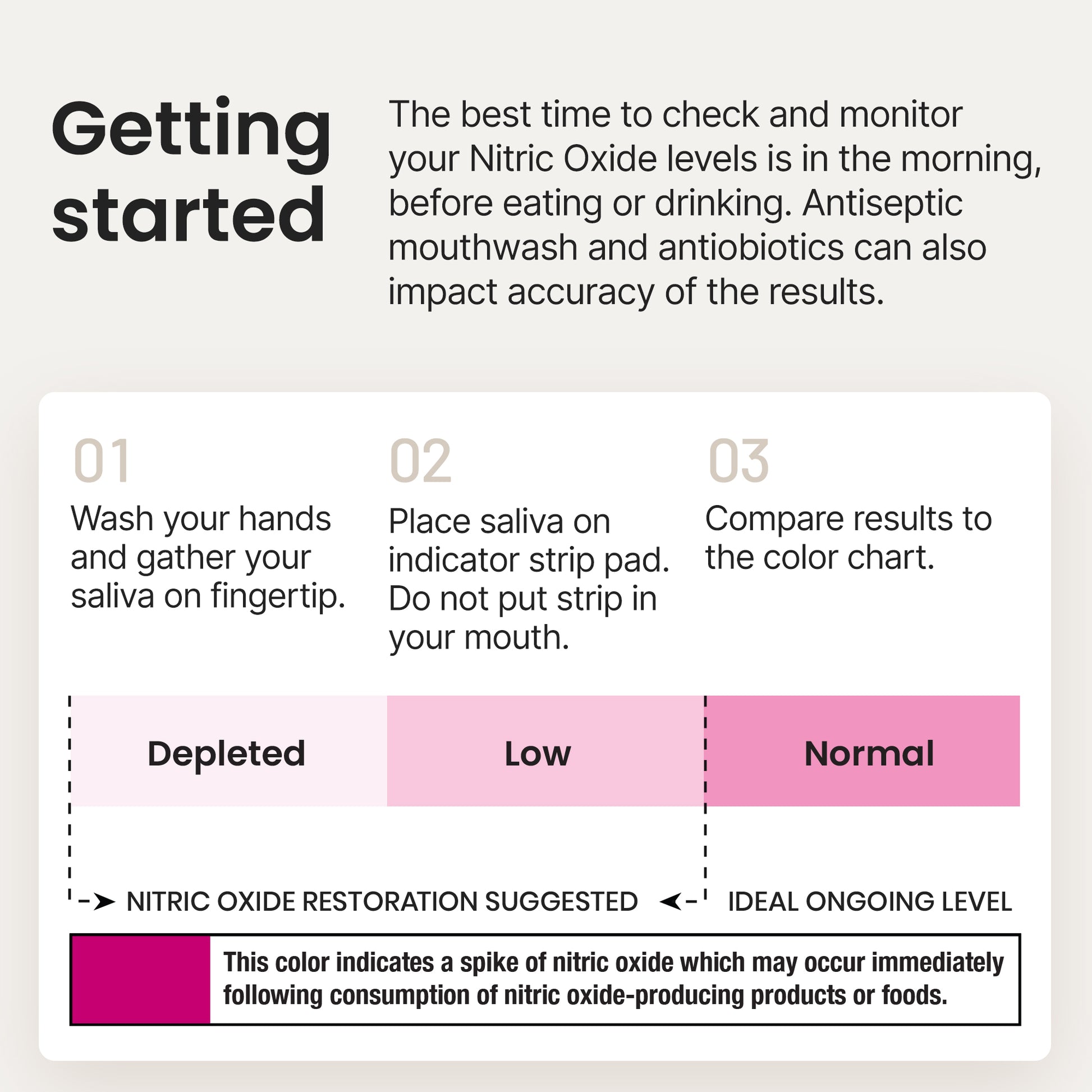 Our patent-pending Nitric Oxide Indicator Strips are a simple way to see if your patients are getting enough essential dietary nitrate from their diet, or if they are Nitric Oxide deficientNon-invasive, the results are instant and easy to read. Which means evaluating N-O status or monitoring progress is a snap. Each tube contains 25 Indicator Strips.